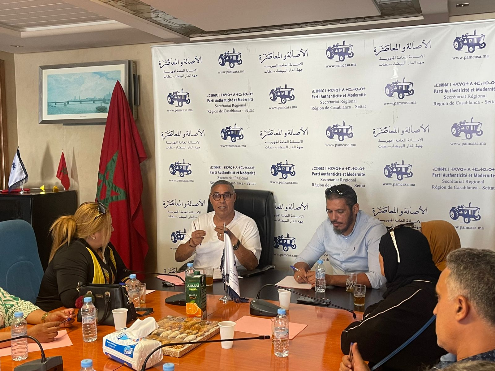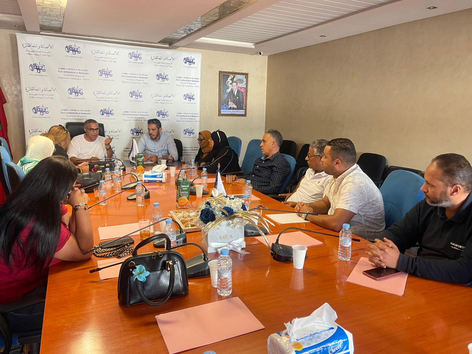 يواصل؛ حزب الأصالة والمعاصرة ديناميته التنظيمية على مستوى عمالة مقاطعات بن امسيك، حيث ترأس النائب البرلماني والأمين الإقليمي للحزب مصطفى جداد، مساء الاثنين 01 شتنبر الجاري، لقاء تواصليا مع السيدات والسادة أعضاء الأمانة المحلية بمنطقة السالمية، وذلك بالمقر الجهوي للحزب في الدار البيضاء، بحضور الأمين المحلي نعمان حسون.