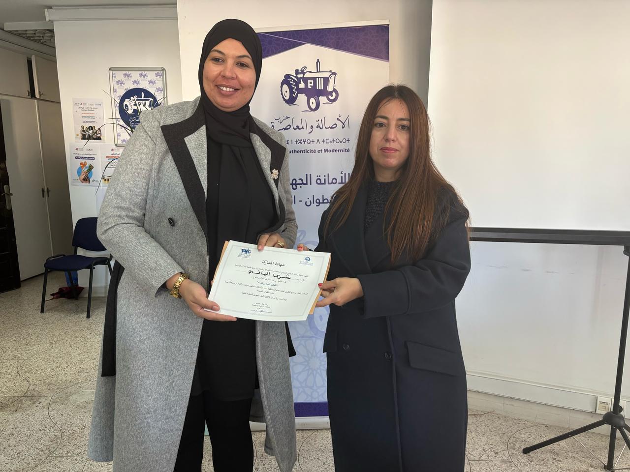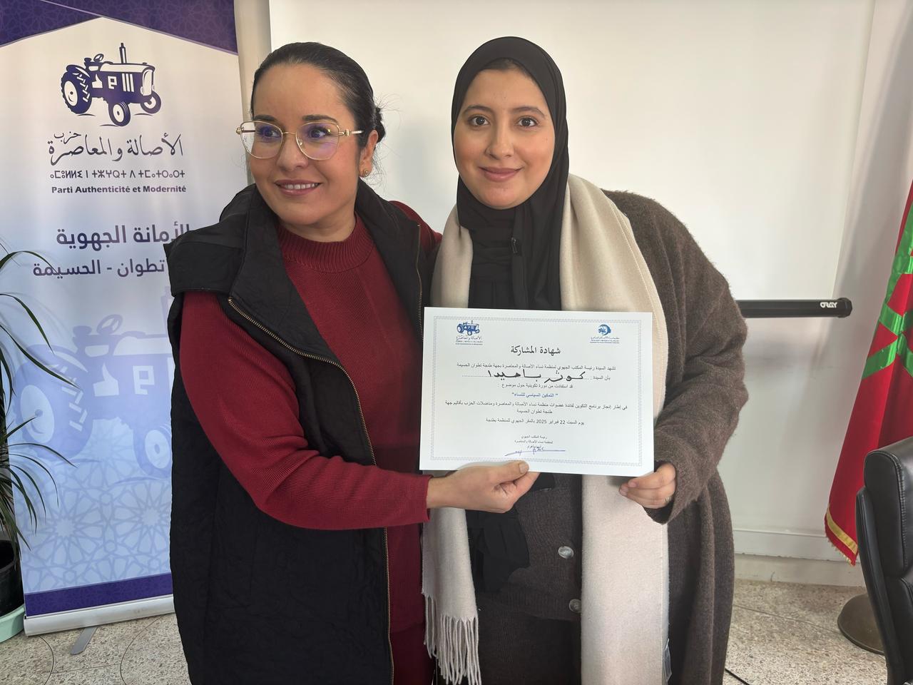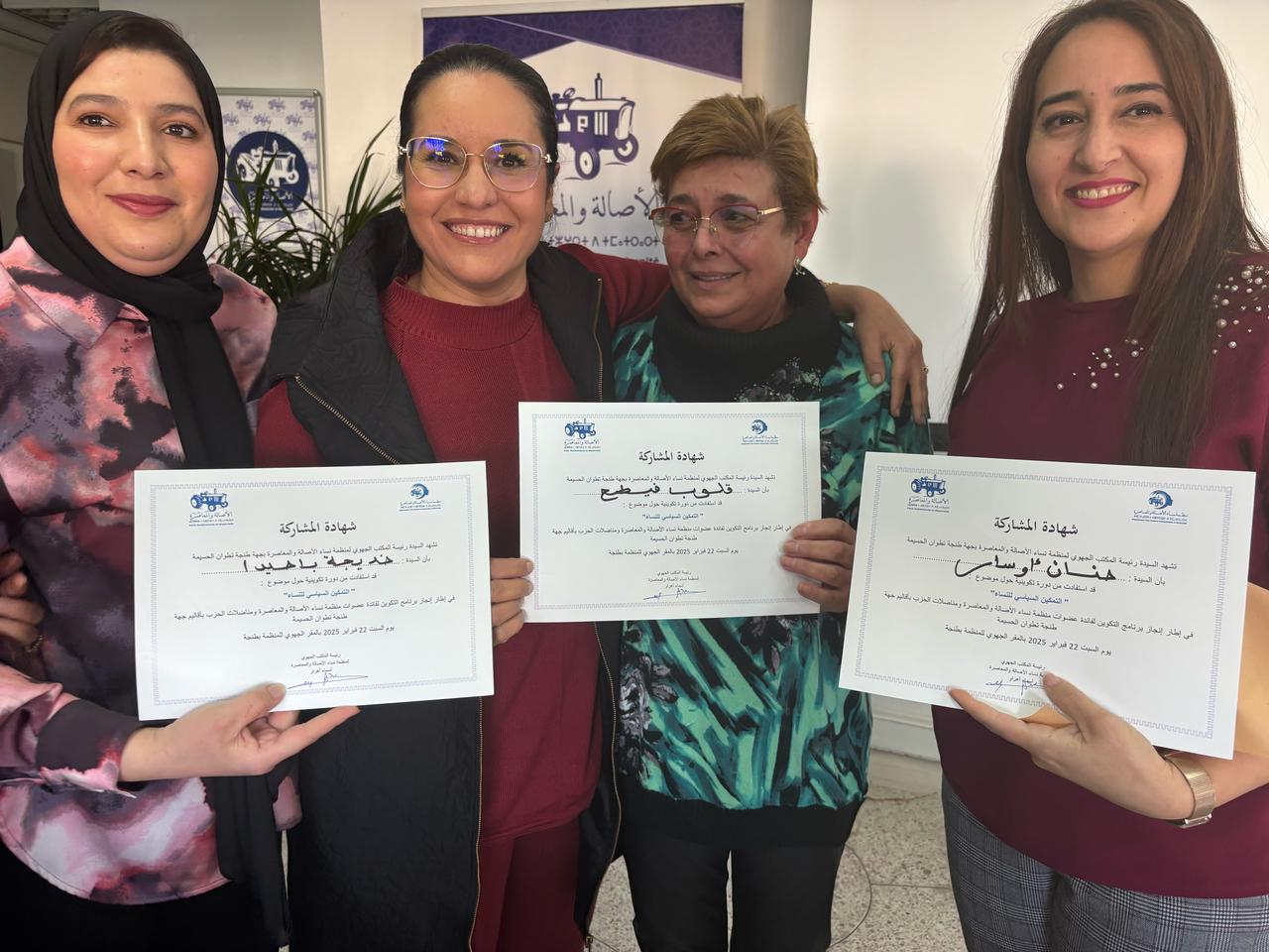 نظم؛ المكتب الجهوي لمنظمة نساء الأصالة والمعاصرة بجهة طنجة تطوان الحسيمة بتنسيق مع الأمانة الجهوية للحزب بالجهة، اليوم السبت 22 فبراير الجاري، بالمقر الجهوي للحزب بطنجة؛ دورة تكوينية حول موضوع ” التمكين السياسي للنساء”، وذلك في إطار تنزيل برنامج عمل المنظمة على المستوى الجهوي.