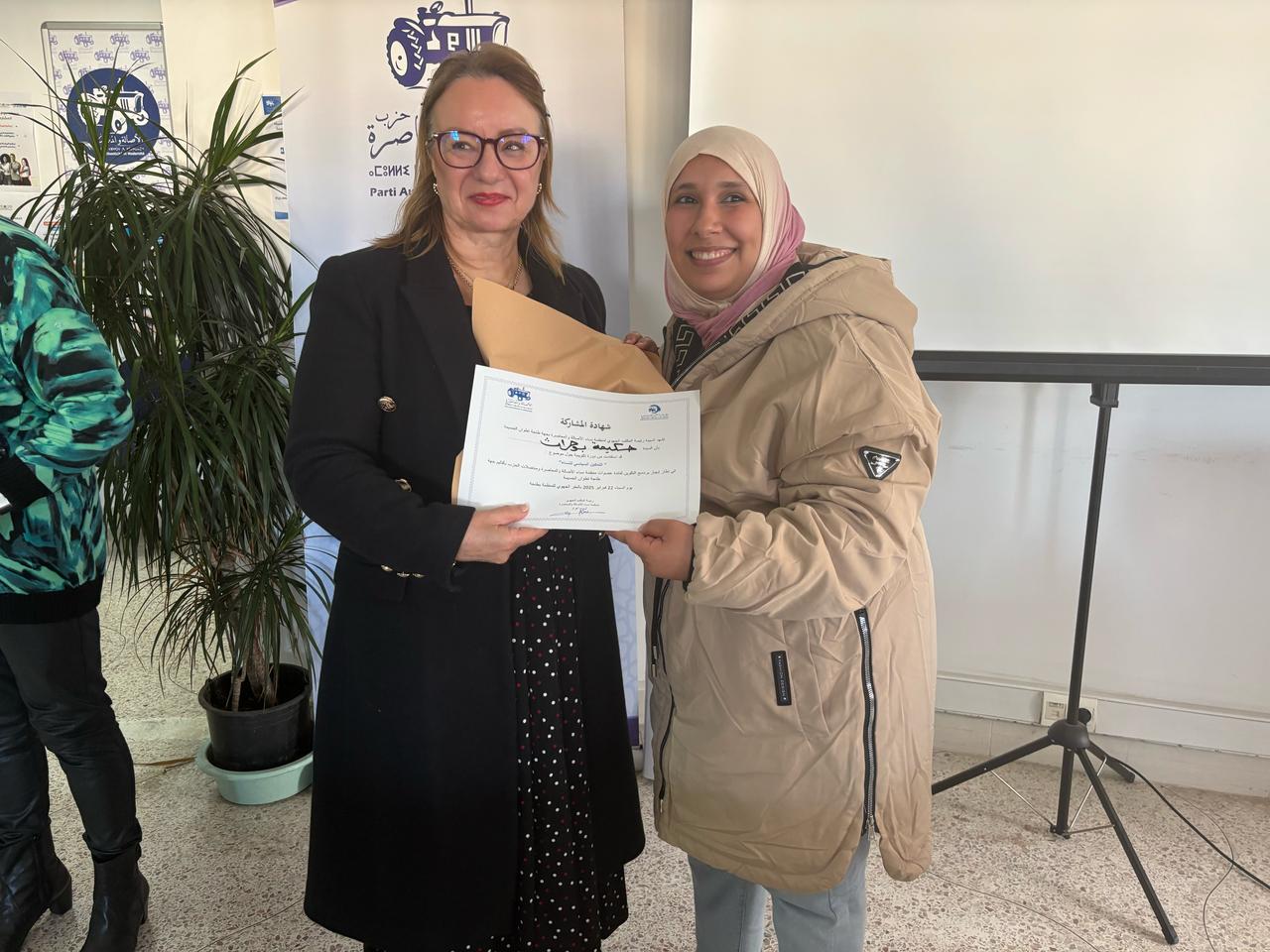 أما رئيسة منظمة النساء قلوب فيطح، فأبرزت أن المكتب الجهوي يراهن على أهمية التكوين كوسيلة لتمكين المرأة سياسيا بشكل منصف وحقيقي، مؤكدة أن التنمية الشاملة لا يمكن تحقيقها دون مشاركة فعالة للنساء في مختلف المجالات.