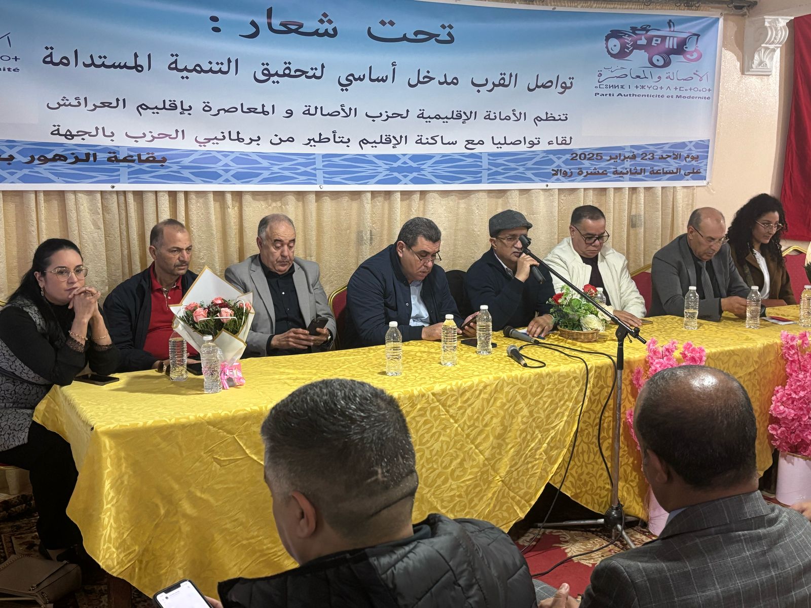 اللقاء، الذي جرى تحت شعار “تواصل القرب مدخل أساسي لتحقيق التنمية المستدامة”، أطره الأمين الجهوي للحزب بجهة طنجة تطوان الحسيمة، عبد اللطيف الغلبزوري، إلى جانب نواب الحزب في البرلمان، وهم محمد حماني، رئيس مجلس جماعة الساحل، والعربي المحرشي، وعبد الرحيم بوعزة، عضو المكتب السياسي، وقلوب فيطح، عضو المكتب السياسي ورئيسة منظمة نساء الأصالة والمعاصرة.