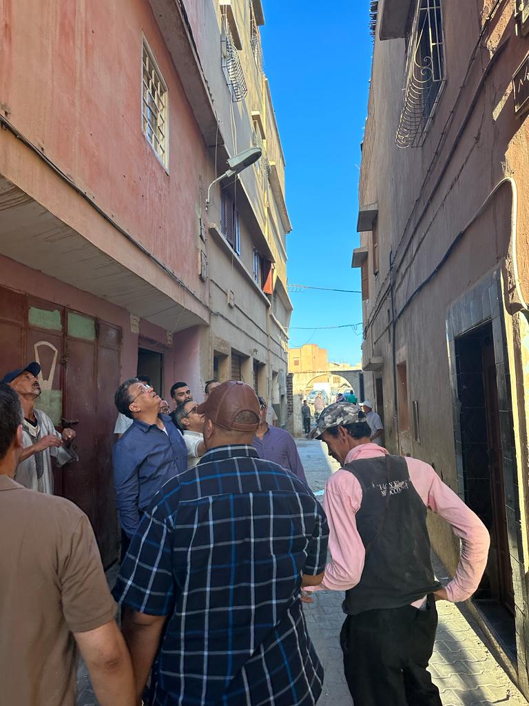 السيد وهبي وبعد أن عقد لقاء عمل مع أعضاء من المجلس بمقر البلدية، قام بزيارة ميدانية تفقد خلالها عددا من المباني السكنية؛ بالإضافة إلى بعض البنايات ذات الطابع الأثري التي تأثرت معالمها بسبب الزلزال المذكور. مشيرا إلى ضرورة تظافر الجهود في المستقبل القريب لإصلاح وترميم كل البنايات التي تضررت بفعل الزلزال الذي كانت قوته قد بلغت 7 درجات على سلم ريشتر.