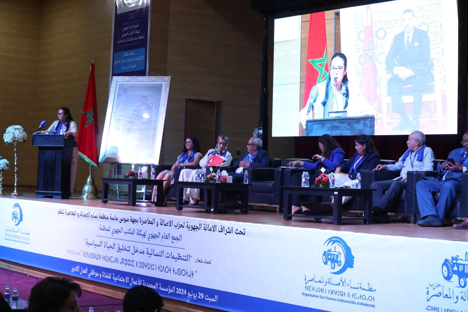 وفي سياق متصل، وصفت رئيسة منظمة نساء حزب الاصالة والمعاصرة شعار الجمع العام الجهوي بسوس ماسة ”التنظيمات النسائية مدخل لتخليق الحياة السياسية الحياة “، بأنه ينم عن موضوعية وذكاء متميز، موجهة عبارات الشكر والتقدير للقيادات الحزبية الجهوية للحزب وأعضاء الامانة الجهوية وأعضاء اللجنة التحضيرية للجمع العام الجهوي التأسيسي للمنظمة، وكذا للقيادات الحزبية الوطنية سواء اعضاء القيادة الجماعية والمسؤول عن التنظيم الحزبي، من خلال دعمهم وتقديم وتسهيل الإجراءات التنظيمية لانجاح كافة المحطات التنظيمية لهيكلة التنظيم النسائي لحزب الأصالة والمعاصرة.